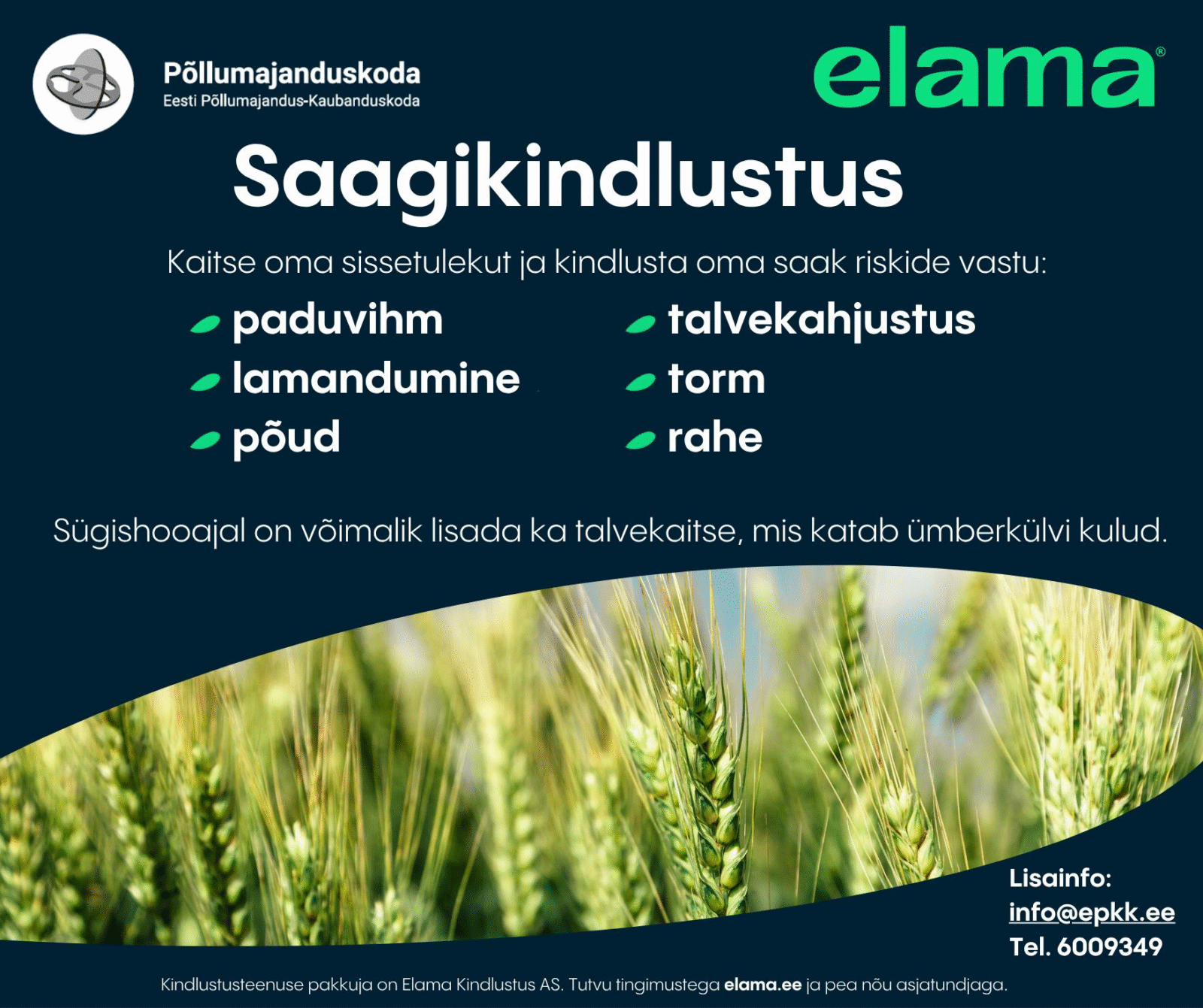 Elama Kindlustuse ja EPKK koostöös loodud uus saagikindlustuse lahendus aitab põllumeestel maandada riske, mida põhjustavad üha sagedamini ette tulevad äärmuslikud ilmastikunähtused – rahe, tugev vihm, torm, põud ja talvekahjustused. Koostöös Euroopa juhtiva edasikindlustajaga välja töötatud toode on loodud just Eesti põllumeeste vajadusi silmas pidades.